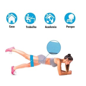 O kit possui cinco faixas elásticas circulares de diferentes intensidades (ultra leve, leve, médio, forte e ultra forte), que possibilitam a realização de diversos exercícios multifuncionais