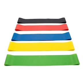 O kit de faixas mini bands possui cinco faixas elsticas circulares de diferentes intensidades ultra leve, leve, mdio, forte e ultra forte , que possibilitam a realizao de diversos exerccios multifuncionais para o corpo inteiro.