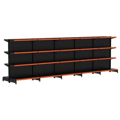 Kit 5 Módulos De Gôndolas Centro 1,37 Fit40 Amapá Expositor Preto Kit 5 Módulos de Gôndolas Centro 1,37 FIT 40 Amapá. Ideal para mercados, mercearias, farmácias, papelarias, lojas de utilidades e . Equipamento para comerciantes que desejem uma loja de pequeno e médio porte atrativa, organizada e prática. Montagem fácil por sistema de encaixe, sem uso de parafusos. Inclinação da bandeja em 3 posições e fundo quadrado para melhor exposição. Possui bandejas reguláveis na coluna a cada 25mm, o que permite adição de bandejas extras. Sistema de reforço para maior capacidade de carga e estabilidade. Ponteira de coluna para proteção e durabilidade. Porta Etiquetas Smart, que não solta fácil. A fileira de Gôndolas deve ser iniciada com a Gôndola Inicial que possui 2 colunas. A Gôndola Continuação possui 1 coluna, utilizada para dar continuidade à fileira e não pode ser montada individualmente. Todos os produtos Amapá possuem qualidade, resistência e durabilidade garantidas pelo uso de matérias-primas de alto padrão, processos produtivos tecnológicos e controle de qualidade. A pintura dos produtos é feita por meio da técnica eletrostática e com tratamento anticorrosão, deixando uniforme e resistente. COMPOSIÇÃO DE CADA MÓDULO: 2 base, 6 bandejas, colunas e porta etiquetas. CAPACIDADE POR BANDEJA: 40kg. LARGURA DA BANDEJA: 90cm. LARGURA TOTAL: 96cm. PROFUNDIDADE BASE: 0,40cm. PROFUNDIDADE BANDEJA: 0,30cm. DIMENSÕES DE CADA MÓDULO MONTADO(CxAxP): 480x137x40cm. A Amapá resguarda a si o direito de efetuar, sem prévia autorização, alterações referentes aos projetos e as informações de seus produtos (Lei 10.406/02). Kit 5 Módulos de Gôndolas Centro 1,37 FIT 40 Amapá é na Atau.