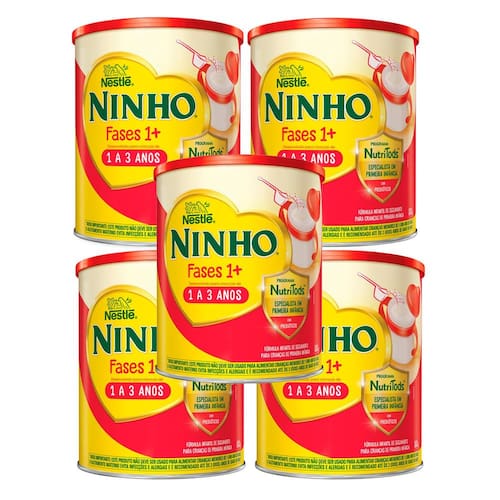 Kit 5 Ninho Fases 1+ Fórmula Infantil Primeira Infância de 1 a 3 anos 800g