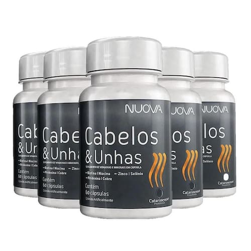 Kit 5 nuova cabelos e unhas biotina catarinense 60 cápsulas