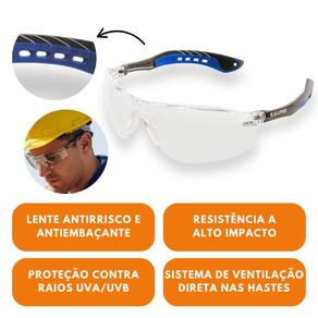 Kit 5 Óculos de Proteção Antirrisco Antiembaçante Jamaica Kalipso - Incolor