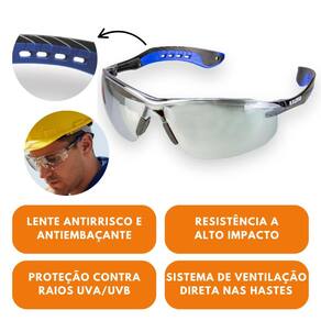 Proteção lentes - Incolor AF e Amarela: Contra raios ultravioleta (U6) - Cinza AF, Marrom e Azul espelhado: Contra raios ultravioleta (U6) e Luz intensa (L2.5) - Cinza espelhado: Contra raios ultravioleta (U6) e Luz intensa (L3) - Cinza espelhado: Contra raios ultravioleta (U6) e Luz intensa (L3)