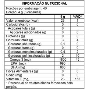 Kit 5 Ômega 3 Concentrado Catarinense 60 capsulas O produto Ômega 3 Concentrado Catarinense em cápsulas é um suplemento alimentar que contém ácidos graxos essenciais, como EPA e DHA, e vitamina E. Aqui está uma descrição detalhada das suas principais características: Finalidade de Uso: EPA 990 mg por porção : Auxilia na redução dos níveis de triglicérides no sangue, contribuindo para a saúde cardiovascular. DHA 660 mg por porção : Importante para a saúde cerebral e ocular. Vitamina E 150% do Valor Diário recomendado : Atua como um antioxidante, protegendo as células contra os danos causados pelos radicais livres. Consumo Recomendado: Dose diária: 3 cápsulas ao dia. Ingredientes: Óleo de Peixe: Fonte de EPA e DHA. Vitamina E Acetato de DL Alfa Tocoferol . Cápsula: Composta por água purificada, gelificante gelatina bovina INS 428 e umectante glicerina INS 422 . Informações Adicionais: Alergênicos: Contém derivados de peixe e pode conter soja. Não contém glúten. Este suplemento é indicado para quem deseja complementar a dieta com ômega 3 e vitamina E, visando benefícios cardiovasculares e antioxidantes. Produto dispensado de registro de acordo com a RDC 27/2010. Marca: Não Informado Ean: 7908609539088