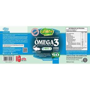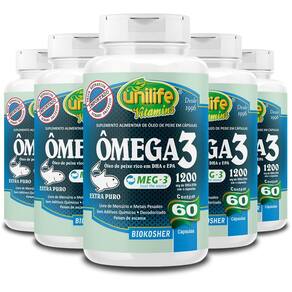 Kit 5 ômega 3 óleo de peixe 1200mg unilife 60 cápsulas Ômega 3 unilife 60 cápsulas O melhor ômega 3 desodorizado O ômega 3 óleo de peixe possui diversos benefícios para saúde, ajudando a prevenir doenças no sistema cardiovascular. O corpo humano não é capaz de produzir ômega 3, tendo que obtê-lo da alimentação. O ômega 3, quando devidamente consumido, reduz o risco de desenvolver algumas doenças. É rico em ácido graxo poli-insaturado de cadeia longa epa e dha, livre de mercúrio e metais pesados, sem aditivos químicos e sem odor. Ômega 3 benefícios: O ômega 3 traz diversos benefícios à saúde, mais especificamente à cardiovascular; No organismo ajuda a desencadear efeitos de proteção ao coração; Atua nos triglicerídeos plasmáticos auxiliando na sua redução e como consequência auxilia na redução do total. Ômega 3 como tomar Sugere-se a ingestão de 2 a 4 cápsulas ao dia, após as refeições. Ingerir com líquido. Ingredientes do ômega 3 unilife Óleo de peixe. Cápsula: gelatina bovina e água. Omega 3 é extraído de peixes de escama, como a anchova e a sardinha. Cada cápsula contém 1000 mg de óleo de peixe, dos quais 195 mg são de ácido eicosapentaenoico epa e 122 mg são de ácido decosahexaenoico dha . Peso total da cápsula: 1200mg. Não contém glúten. Marca: Não Informado Ean: 7908609502846
