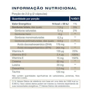 Óleo de peixe, luteína da or de Tagetes erecta, taurina,