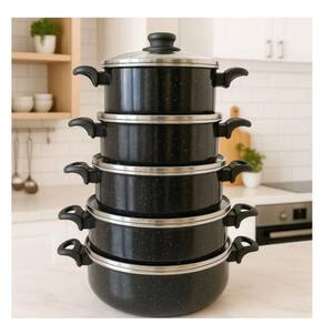 Kit 5 Panelas Com Tampa De Vidro Alumínio Grosso - Preto - Jogo de panelas de alumínio com tampas de vidro