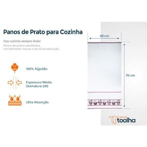Característica Principal: Panos de Prato incrivelmente macios e absorventes. Barra lindamente decorada com espaço para bordar.