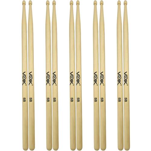Kit 5 Pares de Baquetas Ponta de Madeira Maple Voik 5B
