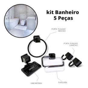 -01 Kit para Banheiro com 5 Peças na cor Preta
