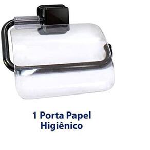 -kit com 5 peças para banheiro organizado. -feito em polipropileno resistente na cor preta. -componentes: 1 saboneteira, 1 porta toalhas argola, 2 porta toalhas gancho simples, 1 papeleira.