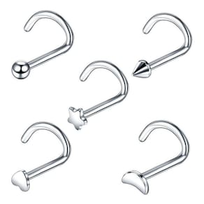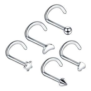 Kit 5 Piercing Nariz Nostril Atacado Coração Estrela Lua Bol Vendas nos últimos 60 dias marca: Love Bijoux modelo: estrela, coração, lua, bolinha unidades por embalagem: 5 espessura: 0.8 mm materiais: Aço tipo de piercing: Nostril zona de aplicacao: Nariz Ean: 7899293870925