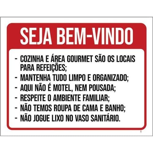 Kit 5 Placa Bem Bindo Regras Do Airbnb Cozinha Gourmet36x46 Placas de sinalizaço fabricadas com poliestireno de alto impacto PSAI de 2mm e impressão ultravioleta.