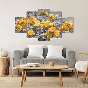 Kit 5 Placa Quadro Decorativo Quarto Sala Flores Vermelha