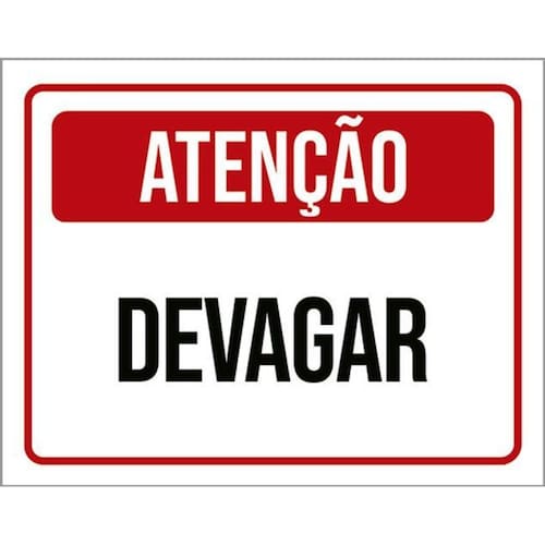 Kit 5 Placas Atenção Devagar Vermelha 36x46 Placas de sinalizaço fabricadas com poliestireno de alto impacto PSAI de 2mm e impressão ultravioleta.