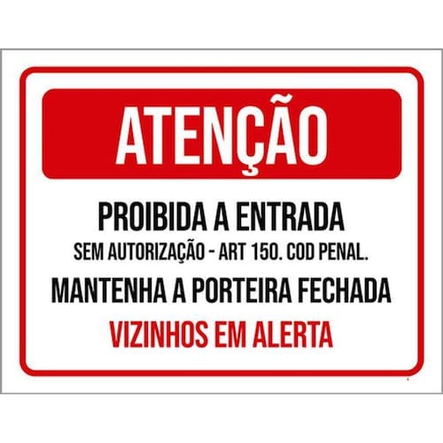 Kit 5 Placas Atenção Proibida Entrada Vizinhos Em Alerta Placas de sinalizaço fabricadas com poliestireno de alto impacto PSAI de 2mm e impressão ultravioleta.