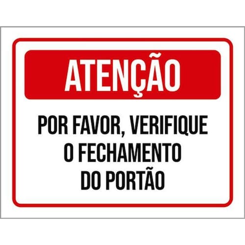 Kit 5 Placas Atenção Verifique Fechamento Do Portão 36x46 Placas de sinalizaço fabricadas com poliestireno de alto impacto PSAI de 2mm e impressão ultravioleta.