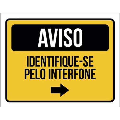Kit 5 Placas Aviso Identifique-se Interfone Seta Direita Placas de sinalizaço fabricadas com poliestireno de alto impacto PSAI de 2mm e impressão ultravioleta.