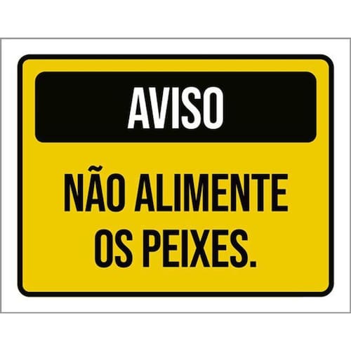 Kit 5 Placas Aviso Não Alimente Peixes Amarela 36x46 Placas de sinalizaço fabricadas com poliestireno de alto impacto PSAI de 2mm e impressão ultravioleta.