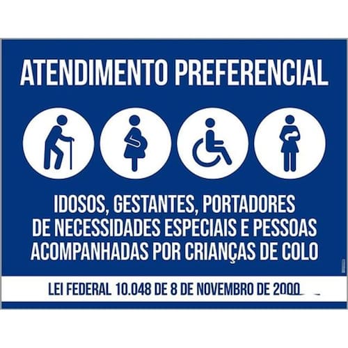 Kit 5 Placas Azul Atendimento Preferencial 36x46 Placas de sinalizaço fabricadas com poliestireno de alto impacto PSAI de 2mm e impressão ultravioleta.
