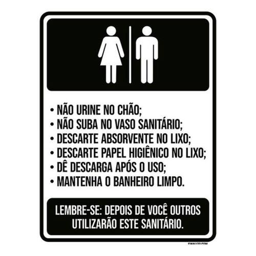 Kit 5 Placas Banheiro Regras De Uso 36x46 Placas de sinalizaço fabricadas com poliestireno de alto impacto PSAI de 2mm e impressão ultravioleta.