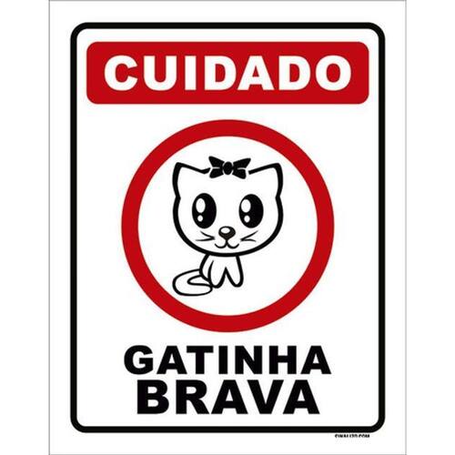 Kit 5 Placas Cuidado Gatinha Brava Fofa 36x46 Placas de sinalizaço fabricadas com poliestireno de alto impacto PSAI de 2mm e impressão ultravioleta.