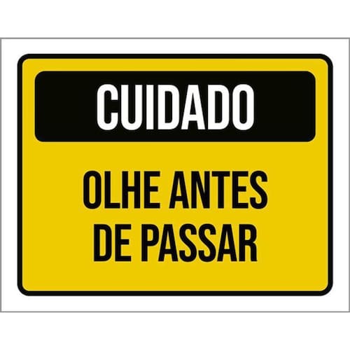Kit 5 Placas Cuidado Olhe Antes De Passar 36x46 Placas de sinalizaço fabricadas com poliestireno de alto impacto PSAI de 2mm e impressão ultravioleta.