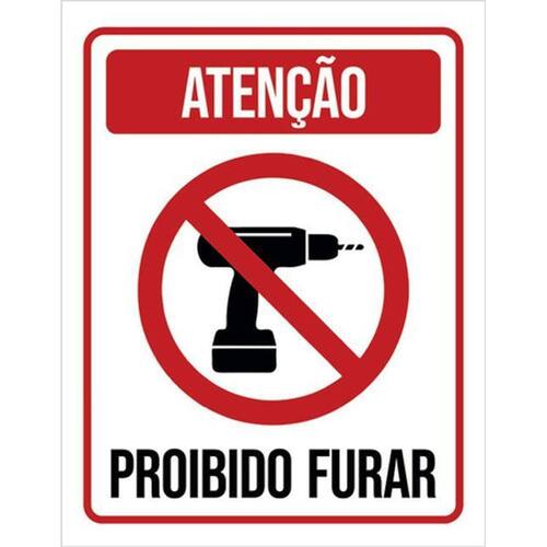 Kit 5 Placas De Sinalização - Atenção Proibido Furar Placas de sinalizaço fabricadas com poliestireno de alto impacto PSAI de 2mm e impressão ultravioleta.
