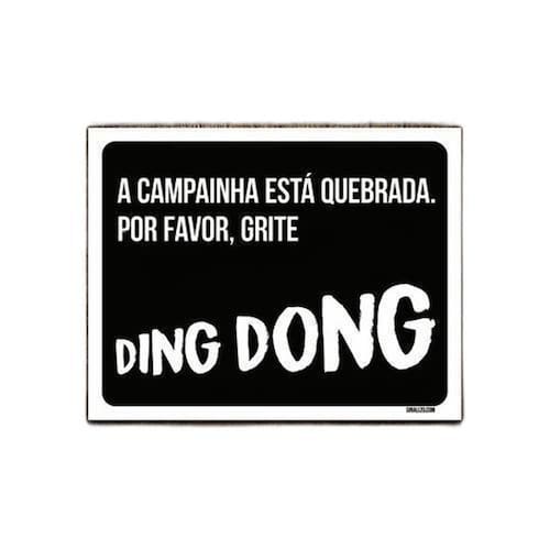 Kit 5 Placas Decorativa - Campainha Quebrada Grite Ding Dong - Informações do Produto: Kit com 5 placas decorativas iguais fabricadas com poliestireno de alto impacto PSAI de 2mm e adesivo vinil automotivo de alta performance. - Medidas: 18cm x 23cm - Fixação: Todas as placas possuem adesivo dupla face para aplicação em qualquer tipo de superfície lisa. de 12 meses e disponibilidade imediata. Marca: Não Informado