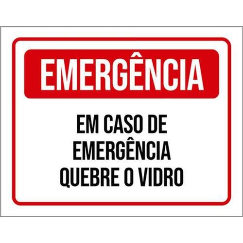 Kit 5 Placas Emergência Quebre O Vidro 36x46 Placas de sinalizaço fabricadas com poliestireno de alto impacto PSAI de 2mm e impressão ultravioleta.