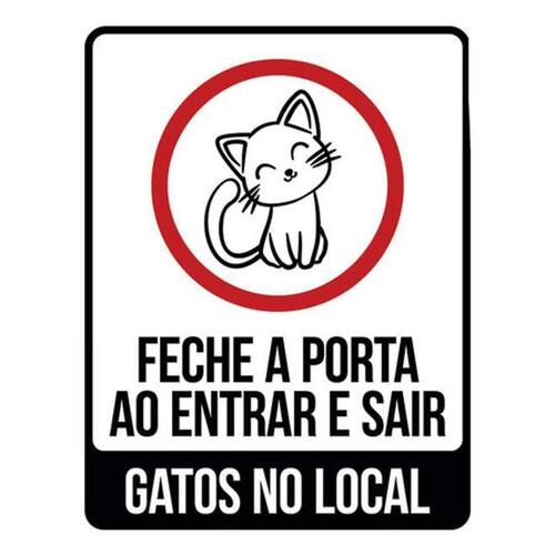 Kit 5 Placas Fecha Porta Entrar Sair Gatos Local 36x46 Placas de sinalizaço fabricadas com poliestireno de alto impacto PSAI de 2mm e impressão ultravioleta.