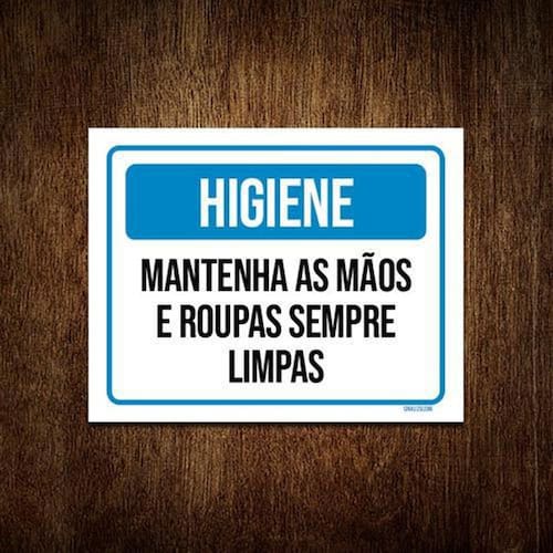 Kit 5 Placas Higiene Mantenha Mãos E Roupas Limpas - Informações do Produto: Kit com 5 placas decorativas iguais fabricadas com poliestireno de alto impacto PSAI de 2mm e adesivo vinil automotivo de alta performance. - Medidas: 18cm x 23cm - Fixação: Todas as placas possuem adesivo dupla face para aplicação em qualquer tipo de superfície lisa. de 12 meses e disponibilidade imediata. Marca: Não Informado