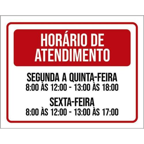 Kit 5 Placas Horário Atendimento Segunda Quinta 8 As 12 Placas de sinalizaço fabricadas com poliestireno de alto impacto PSAI de 2mm e impressão ultravioleta.