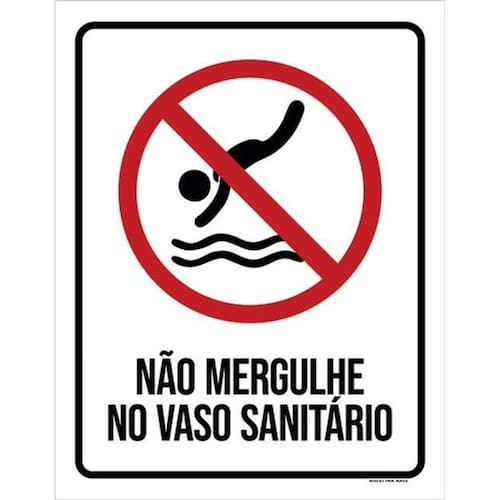 Kit 5 Placas Não Mergulhe Vaso Sanitário Placas de sinalizaço fabricadas com poliestireno de alto impacto PSAI de 2mm e impressão ultravioleta.