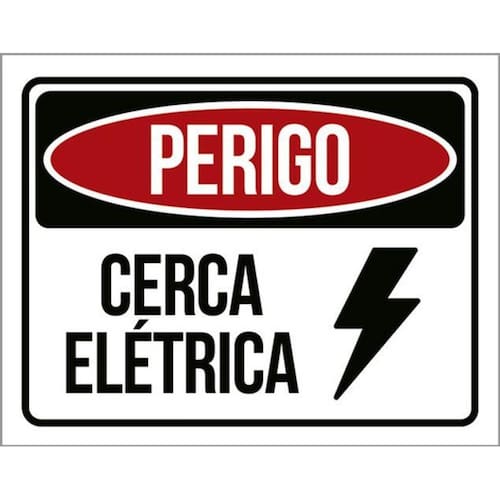 Kit 5 Placas Perigo Cerca Elétrica Atenção 36x46 Placas de sinalizaço fabricadas com poliestireno de alto impacto PSAI de 2mm e impressão ultravioleta.
