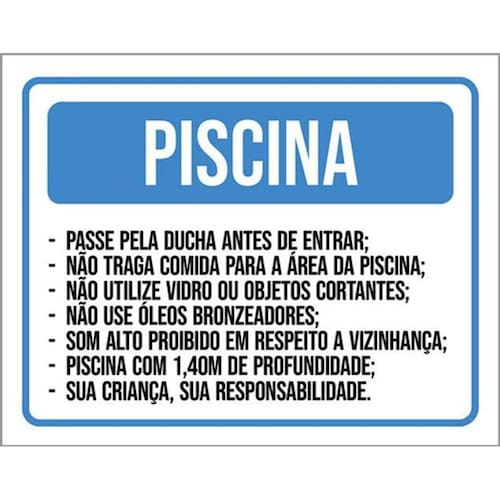 Kit 5 Placas Piscina Ducha Comida Vidro Óleos Som Alto 36x46 Placas de sinalizaço fabricadas com poliestireno de alto impacto PSAI de 2mm e impressão ultravioleta.