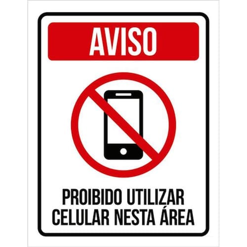 Kit 5 Placas Proibido Celular Nesta Área 36x46 Placas de sinalizaço fabricadas com poliestireno de alto impacto PSAI de 2mm e impressão ultravioleta.