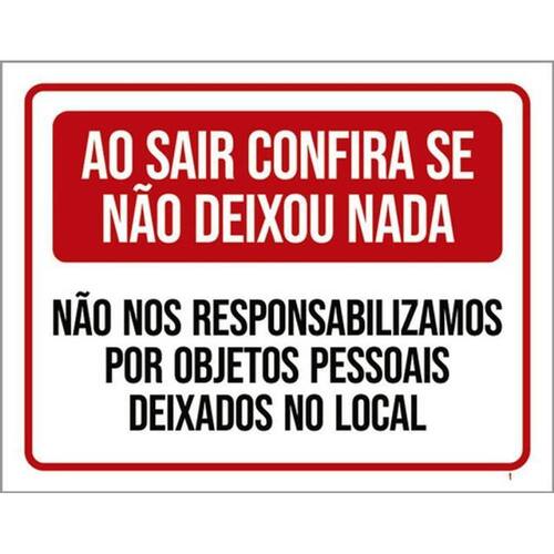 Kit 5 Placas Sair Confira Deixou Nada Responsabilizamos Placas de sinalizaço fabricadas com poliestireno de alto impacto PSAI de 2mm e impressão ultravioleta.