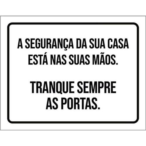 Kit 5 Placas Segurança Sua Casa Tranque Sempre Portas Placas de sinalizaço fabricadas com poliestireno de alto impacto PSAI de 2mm e impressão ultravioleta.