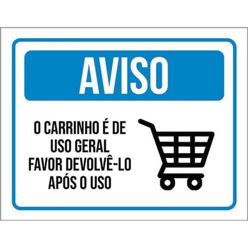 Kit 5 Placas Sinalização Aviso O Carrinho É De Uso Geral