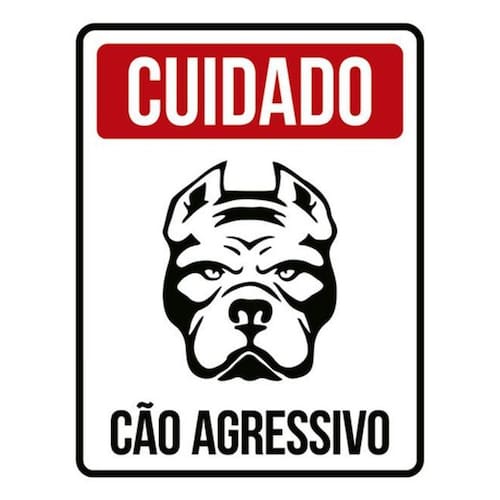 Kit 5 Placas Sinalização - Cuidado Cão Agressivo Vermelha Placas de sinalizaço fabricadas com poliestireno de alto impacto PSAI de 2mm e impressão ultravioleta.