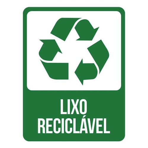 Kit 5 Placas Sinalização - Lixo Reciclável Verde Placas de sinalizaço fabricadas com poliestireno de alto impacto PSAI de 2mm e impressão ultravioleta.