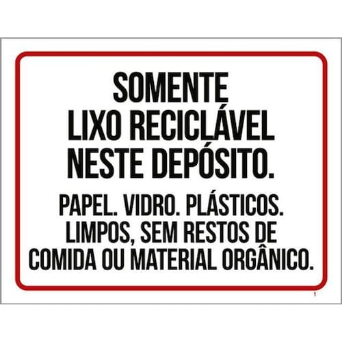 Kit 5 Placas Somente Lixo Reciclável Neste Depósito Vidro Placas de sinalizaço fabricadas com poliestireno de alto impacto PSAI de 2mm e impressão ultravioleta.