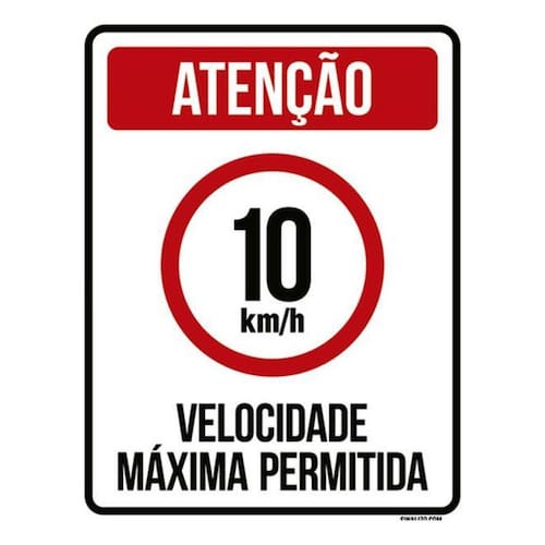 Kit 5 Placas Velocidade Máxima 10km Máximo 36x46 Placas de sinalizaço fabricadas com poliestireno de alto impacto PSAI de 2mm e impressão ultravioleta.