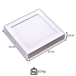 - Com design quadrado de sobrepor e luz branca fria (6500K), ele proporciona 1080 lúmens por peça ideal para residências, comércios ou escritórios.