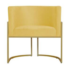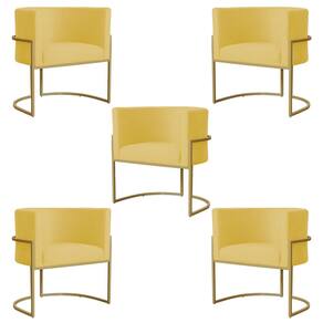 Kit 5 Poltronas Decorativa Sala de Estar Luana Base Gold Suede Amarelo - Montanaris Decor