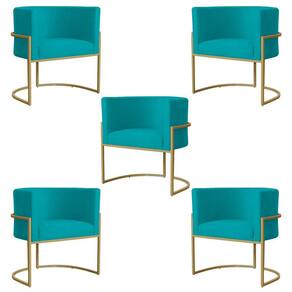 Kit 5 Poltronas Decorativa Sala de Estar Luana Base Gold Suede Azul Turquesa - Montanaris Decor