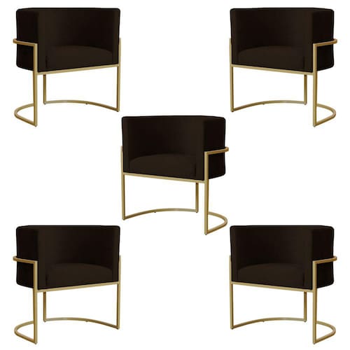 Kit 5 Poltronas Decorativa Sala de Estar Luana Base Gold Suede Marrom - Montanaris Decor
