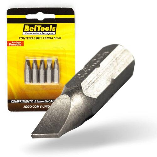 Kit 5 Ponta Bit Fenda CV 25mm x 1/4 x 6,0mm Beltools