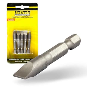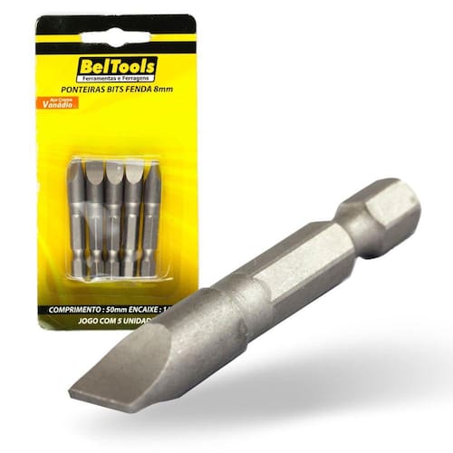 Kit 5 Ponta Bit Fenda CV 50mm x 1/4 x 8,0mm Beltools